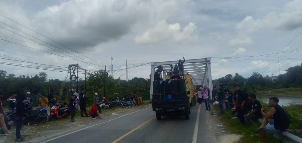 Usai dari bandara, massa bergerak menuju Jembatan Sabbang, Kecamatan Sabbang. Setibanya di lokasi sekitar pukul 10.50 WITA, massa kembali melakukan orasi dan menutup akses Jalan Trans Sulawesi. Penutupan jalan sempat menyebabkan antrean panjang kendaraan dari kedua arah. Bahkan, satu unit truk digunakan sebagai panggung orasi, disertai pembakaran ban bekas di badan jalan.