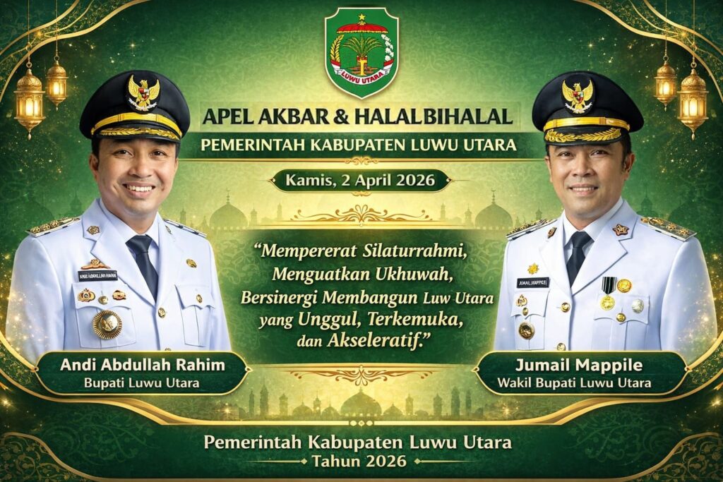 Luwu Utara- Pasca jalani masa kerja fleksibel melalui skema Work From Anywhere (WFA) atau bekerja dari mana saja usai libur Idulfitri 1447 H, seluruh jajaran ASN lingkup Pemerintah Daerah Kabupaten Luwu Utara kembali akan berkumpul dalam bingkai silaturahmi melalui hajatan Halalbihalal pada Kamis, 2 April 2026, yang dirangkaikan dengan Apel Akbar di Lapangan Upacara Kantor Bupati.
