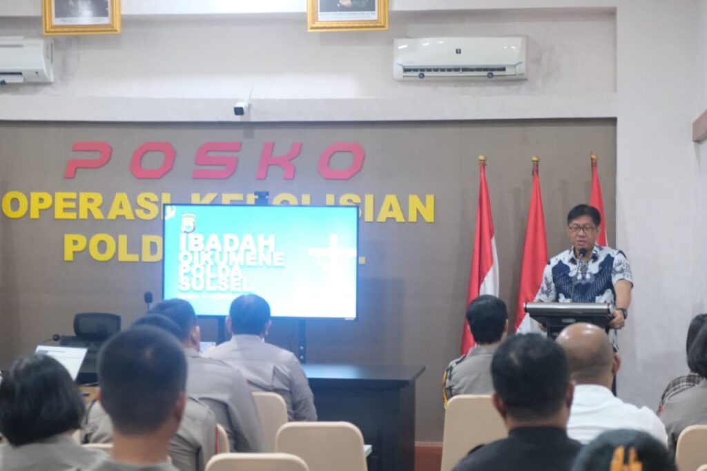 Kegiatan ibadah yang dimulai pukul 08.15 WITA tersebut berlangsung di Aula Biro Operasi Lantai 3 Polda Sulsel. Ibadah dipimpin oleh Pelayan Firman, Ps. Andrew Napiun, dan diikuti oleh personel Polda Sulsel sesuai jadwal serta ketentuan yang telah ditetapkan.