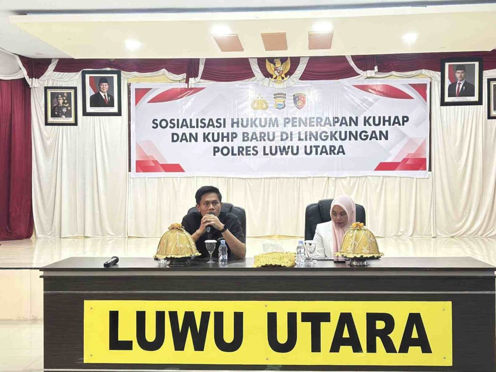 Luwu Utara — Polres Luwu Utara menggelar sosialisasi penerapan Kitab Undang-Undang Hukum Pidana (KUHP) dan Kitab Undang-Undang Hukum Acara Pidana (KUHAP) yang baru, sebagai bagian dari penguatan pemahaman aparat penegak hukum di tingkat kepolisian. Kegiatan berlangsung di Aula Polres Luwu Utara pada Kamis, 11 Desember 2025, pukul 09.00 WITA.