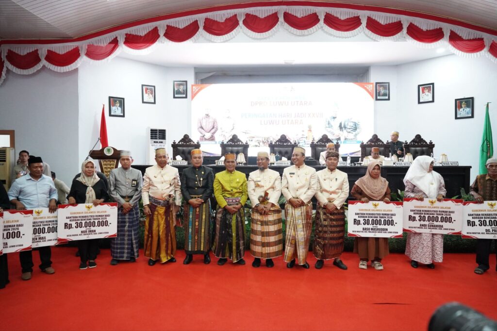 Luwu Utara – Puncak perayaan Hari Jadi ke-27 Kabupaten Luwu Utara yang dilaksanakan dalam Rapat Paripurna DPRD Luwu Utara, Senin (27/4/2026) berlangsung meriah dan penuh khidmat.