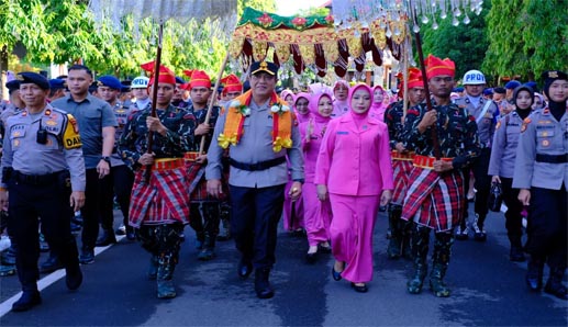 Irjen Pol. Djuhandhani Rahardjo Puro bersama Ny. Upi Djuhandhani menyapa satu per satu jajaran personel Polda Sulsel yang berbaris menyambut kedatangannya. Momen tersebut berlangsung hangat dan penuh kekeluargaan, mencerminkan semangat soliditas di lingkungan Polda Sulsel.
