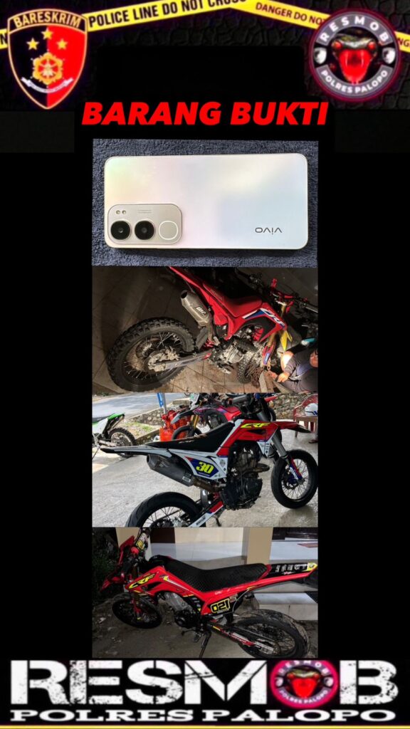 Dari hasil pemeriksaan awal, pelaku mengakui telah melakukan pencurian satu unit sepeda motor Honda CRF warna merah milik korban Haikal di Jalan Tupai, Kota Palopo. Aksi tersebut dilakukan dengan memanfaatkan kelengahan korban yang tidak mengunci stang motor, kemudian motor didorong ke tempat sepi dan disambung kabel hingga berhasil dinyalakan.